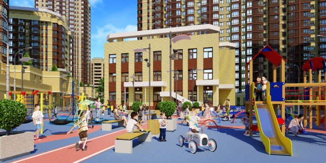 Концепция «все включено»: ЖК с детскими садами, как правило, подразумевают комплексный проект, включающий в себя благоустроенную территорию для прогулок, спортивные площадки и зоны отдыха для детей.